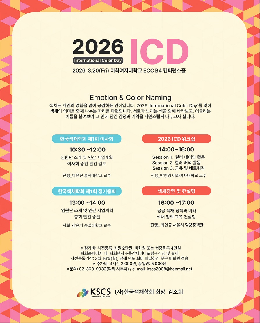 2026 한국색채학회 총회 & ICD 기념 행사(사전등록:~3월 16일까지)